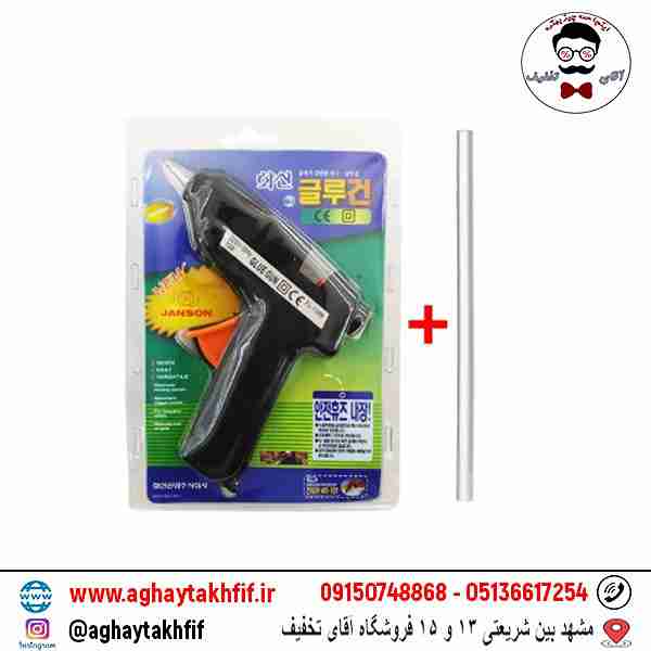 این محصول به همراه دو عدد چسب حرارتی درون جعبه عرضه میشود تا کاربر بلافاصله پس از خرید بتواند از آن استفاده کند. دمای ذوب چسب در این مدل به گونهای تنظیم شده که نه بیش از حد بالا برود و نه عملکرد چسبندگی را کاهش دهد؛ در نتیجه کاربری ایمن و مؤثری را فراهم میکند.