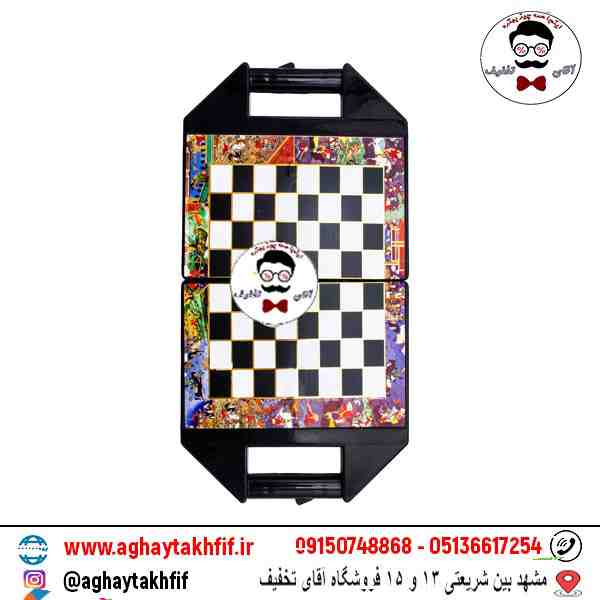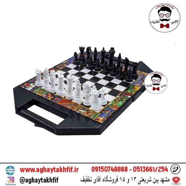 این تخته به راحتی تاشو است و به شما اجازه می‌دهد تا به راحتی آن را با خود به هر جایی ببرید. قطعات شطرنج نیز با طراحی کلاسیک و رنگ‌های سفید و سیاه، به زیبایی و جذابیت بازی می‌افزایند.