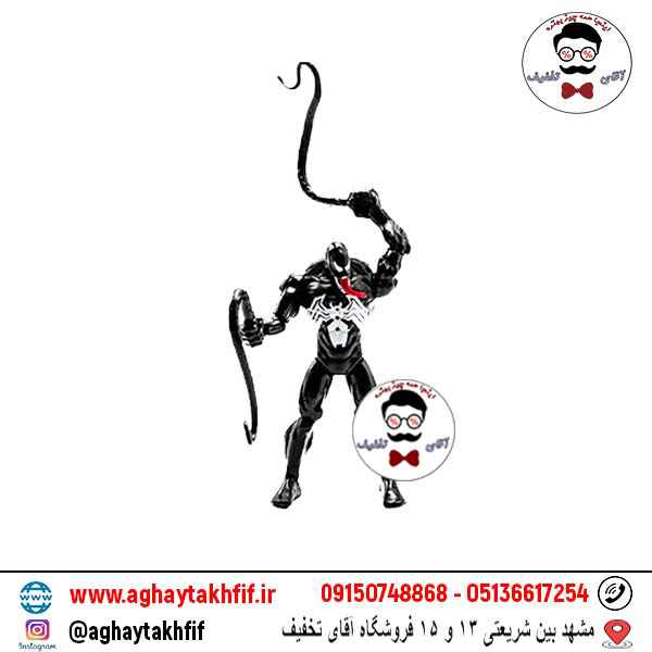 فیگور ونوم اکشن کاراکتر مشکی رنگ، از دنیای کمیک‌های مارول، با جزئیات دقیق و طراحی جذاب ساخته شده است. رنگ مشکی براق و طراحی عضلانی شخصیت، به خوبی حس قدرت و وحشیگری ونوم را منتقل می‌کند.