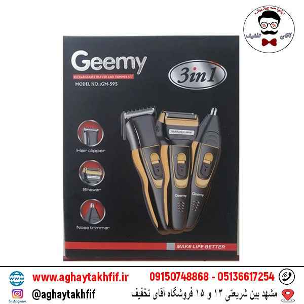 ماشین اصلاح جیمی چندکاره جیومی مدل GM-595، یک محصول با کیفیت و کارآمد برای اصلاح موهای سر و صورت است. این ست شامل سه ابزار مختلف برای اصلاح موهای سر، صورت و بینی است و به شما امکان می‌دهد تا در خانه به راحتی و با کیفیت بالا موهای خود را اصلاح کنید.