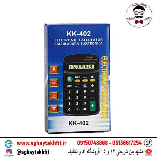 ماشین حساب KK-402 با یک عدد باتری قلمی کار می‌کند که مصرف انرژی بسیار کمی دارد و تا مدت‌ها نیاز به تعویض باتری نخواهد داشت. این موضوع، استفاده از آن را ساده‌تر و اقتصادی‌تر کرده است.