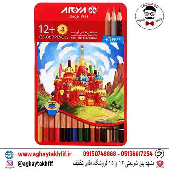 مداد رنگی ۱۲+۳ رنگ آریا (بدنه فلزی)
