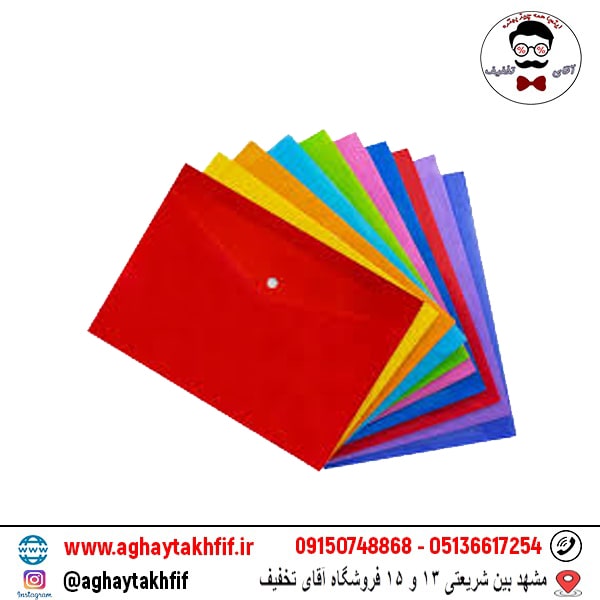پاکت دکمه دار برای بایگانی و نگهداری صحیح از مدارک، برگهها، نوشتههای مهم و جلوگیری از پراکنده شدن کاغذها و اسناد در جاهای مختلف استفاده میشود.