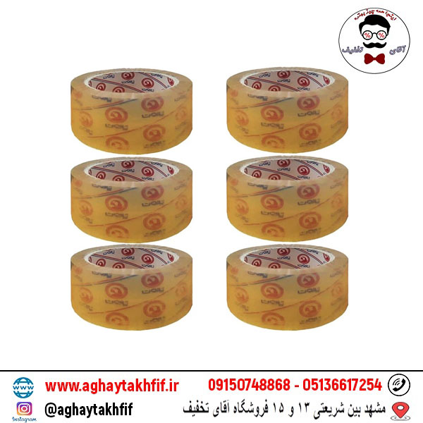 جنس این چسب از پلاستیک شفاف با کیفیت تهیه شده که هم از نظر زیبایی و هم از نظر عملکرد، بسیار مطلوب است. هنگام استفاده از این چسب، رول به‌راحتی و بدون گیر کردن باز می‌شود و در حین چسباندن، حباب ایجاد نمی‌شود. همین موضوع باعث می‌شود سطح بسته‌بندی ظاهری صاف و مرتب باشد.