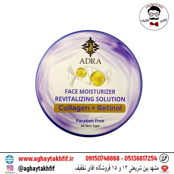 کرم مرطوب کننده آدرا حاوی کلاژن رتینول محصولی از برند ایرانی آدرا است. این محصول با ترمیم و بازسازی پوست روند پیری پوست را تعویق می اندازد.